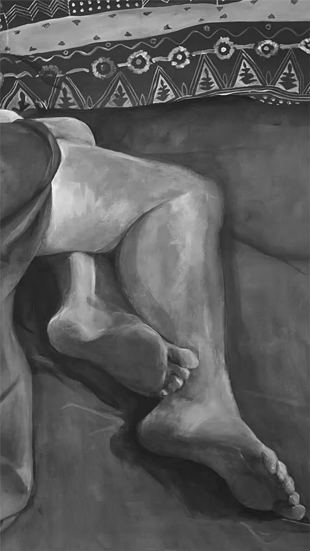 Autour de la toile La fille dans les draps jaunes, ce texte explore la posture humaine comme lieu d’attachement, entre intimité, silence et présence.